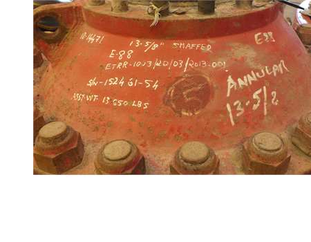 Spherical Blowout Preventer, Shaffer 13-5/8 in, 5000 psi, H2S, 10K psi flange down. Used in good condition.